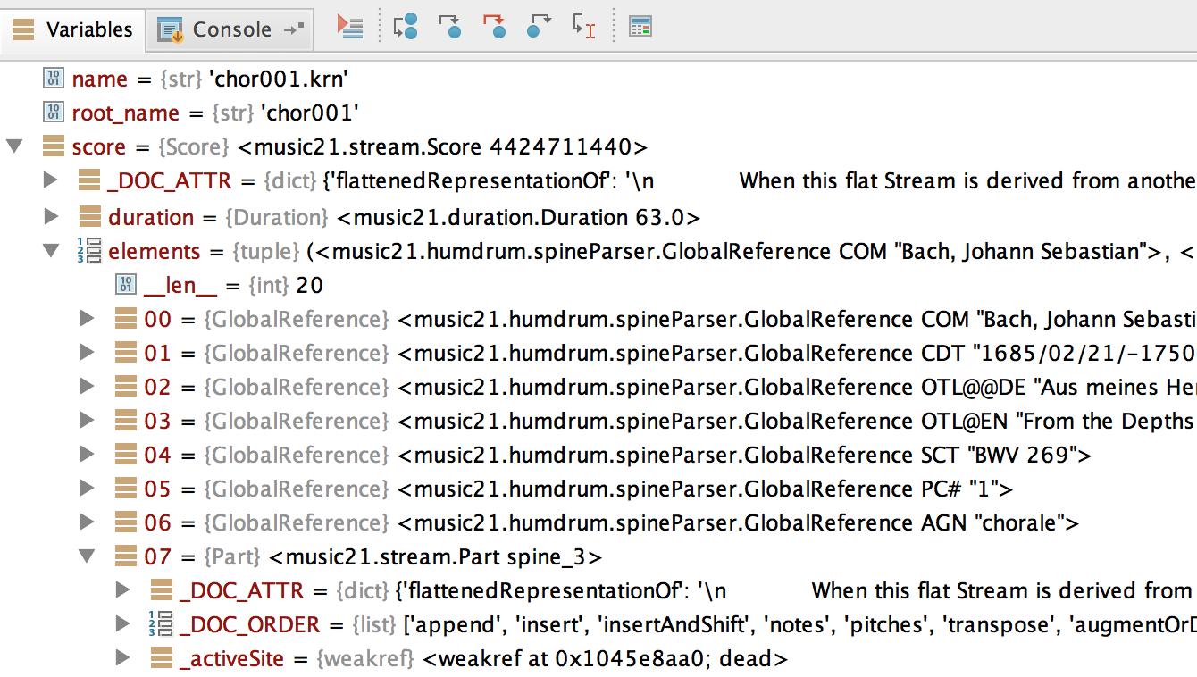 the following example, we can see some music21 data, especially the complex Score