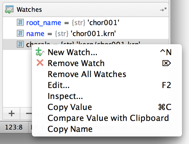 The same apply to watched variables; we can edit and inspect them by using the popup menu.