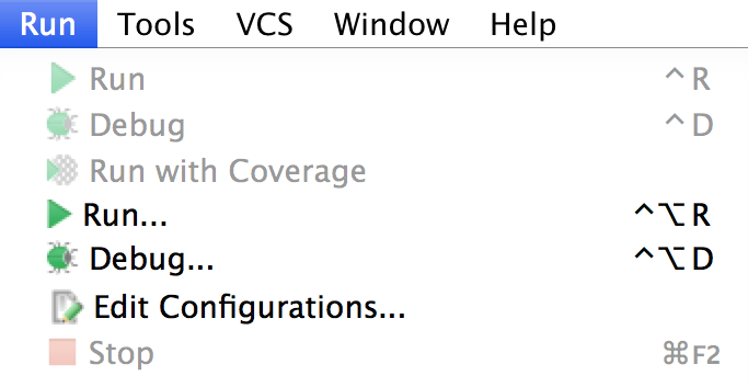Naturally, we can have multiple configurations; we can switch between them by going to Run→Run… (⌥-C-r, A-C-r) and picking the one we want.